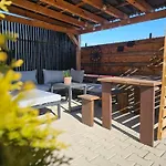 Gæsterne kan slappe af på en terrasse og svømme i en swimmingpool.